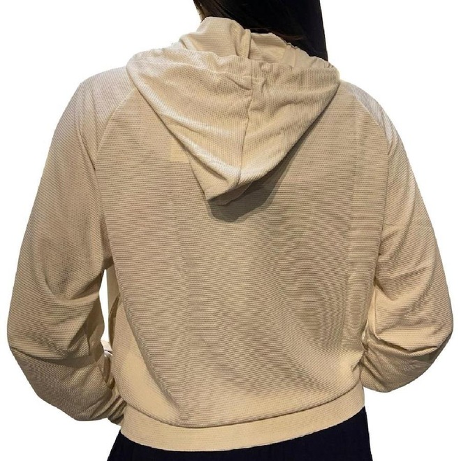 Jaqueta feminina confeccionada em malha leve e texturizada de poliéster. Modelagem raglan com manga longa e capuz. Seu tecido contém a tecnologia FLOW, que proporciona rápida secagem, mantendo o corpo na temperatura ideal para a prática esportiva. Possui abertura frontal em zíper com puxador personalizado, bolsos frontais, capuz com cordão ajustável, costuras laterais deslocadas para frente e aplique 3D de logo Fila Letter na parte frontal esquerda superior.