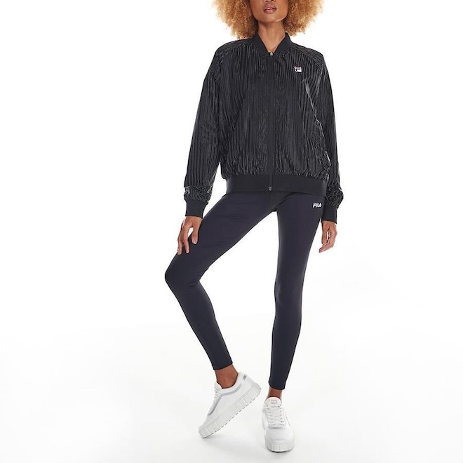 Efeito sanfonado e leve brilho acetinado dão um toque de sofisticação na confecção da Jaqueta Feminina Fila Goffer.
