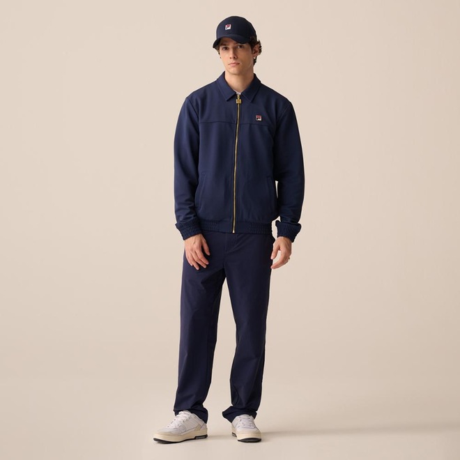 Jaqueta masculina confeccionada em malha texturizada de poliéster com elastano. Modelagem regular com gola polo e manga longa. Possui abertura frontal em zíper dourado com puxador F-Box, cobre gola institucional, recorte horizontal na parte frontal superior, bolsos laterais, punhos e barra com elástico interno e patch F-Box bordado na parte frontal esquerda superior.ref: M17M1Y