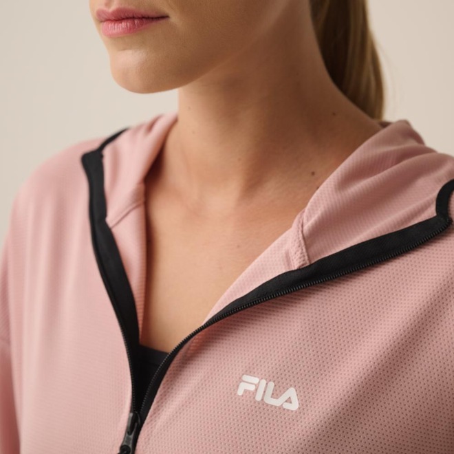 A jaqueta Feminina FILA Mix Mesh Flow é confeccionada em malha texturizada de poliéster e conta com tecnologia Flow, que proporciona mais respirabilidade. É ideal para uso em atividades de baixa intensidade ou também para compor looks após atividades esportivas. Possui capuz, bolsos frontais e recortes anatômicos, além de zíper frontal com puxador personalizado. Exibe FILA Letter aplicado no peito esquerdo da peça.