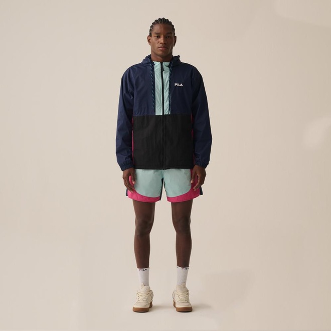 - Sobre o produto Jaqueta Anorak masculina confeccionada em tecido plano impermeável (Waterproof) de poliamida com forro em mesh respirável. Modelagem comfort, mais solta no corpo, com capuz e manga longa. Seu tecido contém as tecnologias FLOW, que oferece secagem rápida e respirabilidade, e a UV PROTECTION, que fornece proteção solar FPS 50+ dos raios UVA e UVB. Possui cordão de ajuste no capuz, abertura frontal em zíper tratorado com puxador personalizado, bolsos laterais, recortes contrastantes que mesclam tecido Ripstop com tecido liso, punhos com elástico interno, barra com ajuste de elástico roliço e stopper que possibilita versatilidade de uso e logo Fila Letter bordado na parte frontal esquerda superior.- ref: M17M21