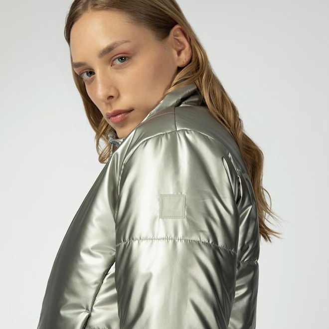 Jaqueta feminina confeccionada em matelassê de poliéster com forro em tecido plano de poliéster. Modelagem puffer com gola alta e manga longa. Possui abertura frontal em zíper com puxador personalizado F-Box, bolsos frontais embutidos com forro em tecido plano de 100% poliéster acompanhando o recorte frontal, punhos escondidos por dentro da manga em ribana, acabamento embutido na barra e recorte com elástico centralizado na parte traseira para um ajuste confortável, manga duas folhas, recortes geométricos e patch F-Box emborrachado aplicado na manga esquerda próximo ao ombro.ref: M0ZXUG