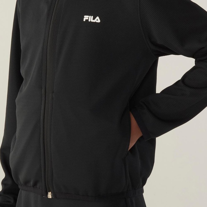 A Jaqueta Junior Feminina FILA Regular Flow é feita em poliéster texturizado, ideal para treinos de baixa e média intensidade. Possui modelagem regular, gola anatômica com zíper invertido, cavas deslocadas e bolso embutido na lateral. Possui barra com viés de elástico e o FILA Letter em silicone no peito adiciona um toque moderno e autêntico.