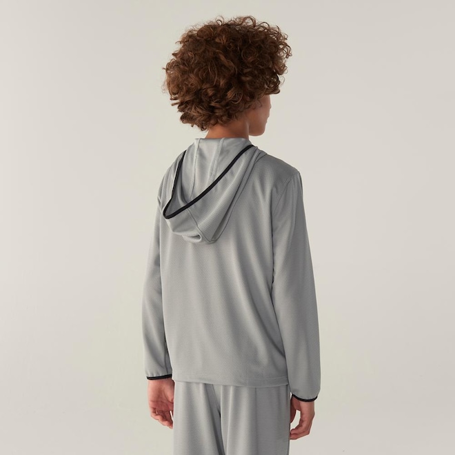Praticidade e Ajuste: O capuz anatômico e os punhos com acabamento em viés de elástico proporcionam um ajuste perfeito. O bolso embutido oferece espaço para guardar pequenos pertences com segurança.