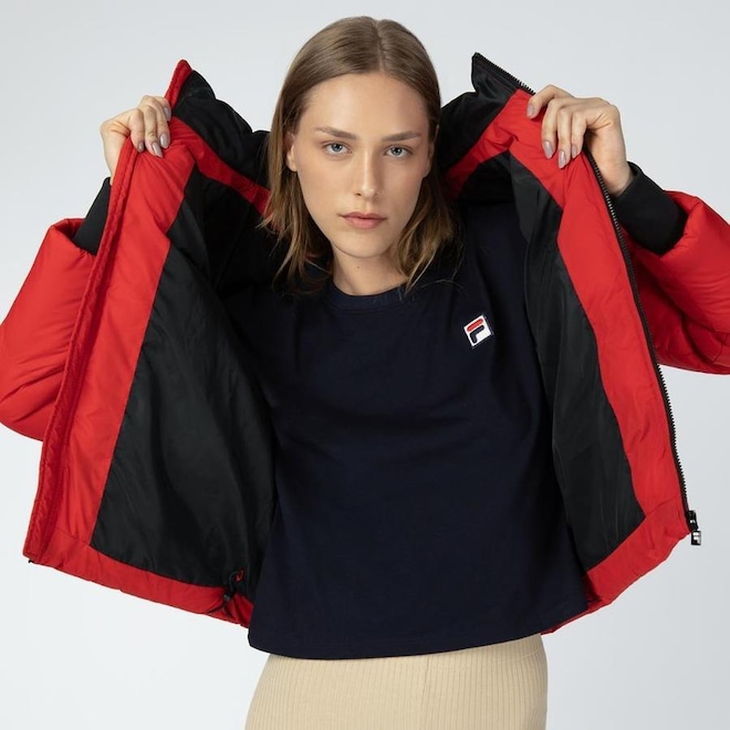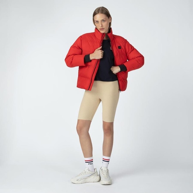 Jaqueta feminina confeccionada em matelassê de poliéster. Modelagem puffer, que proporciona isolamento térmico, com manga longa e gola alta. Possui abertura frontal em zíper com puxador personalizado F-Box, cavas deslocadas, punhos em ribana, bolsos frontais invisíveis embutidos no padding com fechamento em zíper, ajuste interno nas laterais da barra com elástico rolete e stopper e patch F-Box surton emborrachado aplicado na parte frontal esquerda superior.ref: M0ZWEY