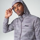 Jaqueta masculina confeccionada em tecido plano de poliéster com elastano. Modelagem regular com capuz e manga longa. Possui abertura frontal em zíper com puxador personalizado, bolsos laterais acompanhando as costuras deslocadas para frente, punho tombado com elástico interno, capuz com elástico interno regulável, barra traseira arredondada com comprimento maior que a barra frontal e logo Fila Letter em relevo aplicado na parte frontal esquerda superior. ESTAMPADO, CHROMAref: M0ZXX6