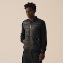 A jaqueta oferece dois bolsos laterais com zíper para guardar seus itens com segurança. Os punhos, a barra e a gola mandarim com acabamentos elastizados proporcionam um ajuste firme e confortável, ideal para os dias mais frios.