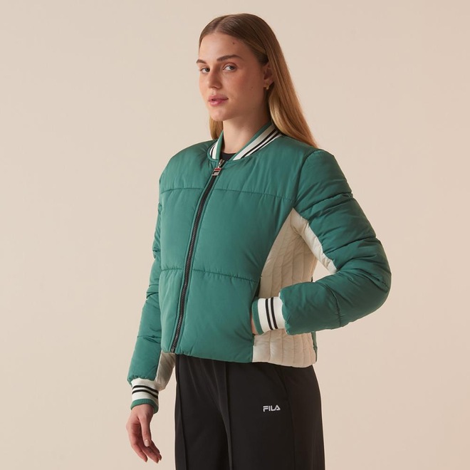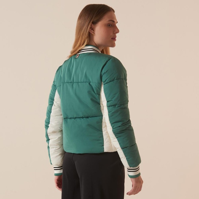 A Jaqueta Feminina FILA UC Puffer resgata os ícones urbanos dos anos 90 e 2000 com um design moderno e funcional. Confeccionada em tecido plano de poliéster com recortes em poliamida, possui modelagem regular, gola e punhos em ribana, e bolsos invisíveis embutidos. Tem abertura frontal com zíper Vislon e puxador personalizado F-Box. Ajustes internos na barra com elástico e stopper e patch F-Box no centro das costas completam o visual.