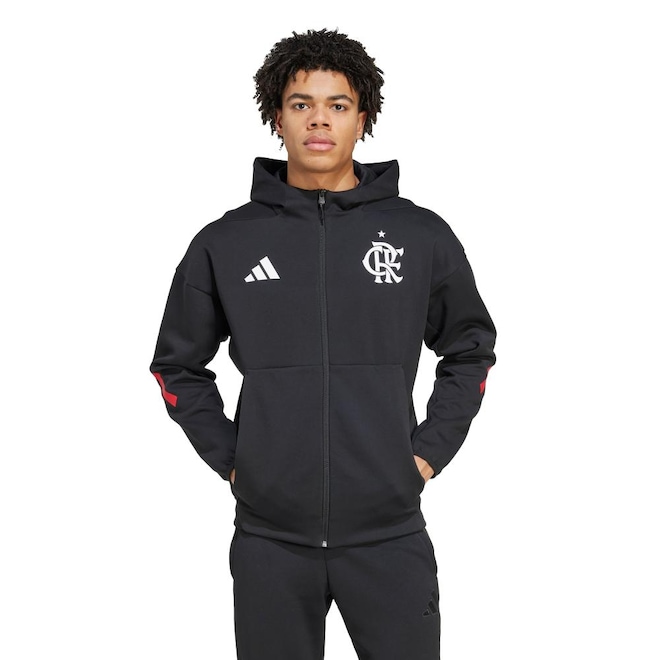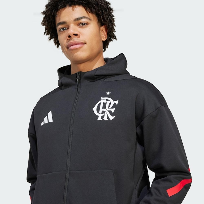 Prepare-se para fazer parte de algo especial com uma jaqueta Z.N.E. adidas criada para os torcedores do CR Flamengo. A jaqueta de futebol que os jogadores usam antes do jogo é feita com tecido macio para mantê-los concentrados nos próximos 90 minutos. O emblema no peito e a arte do time no capuz lembram aos rivais quem eles estão enfrentando.