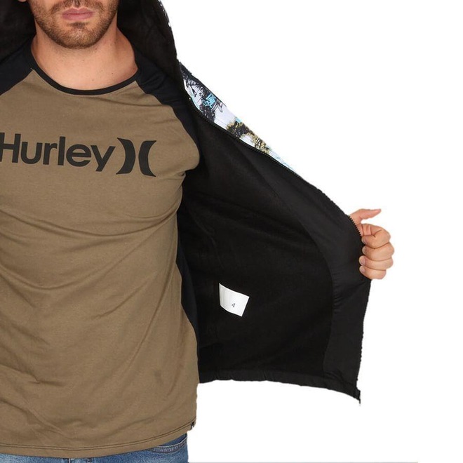 Jaqueta Hurley Outrigger, forrada e com estampa exclusiva.