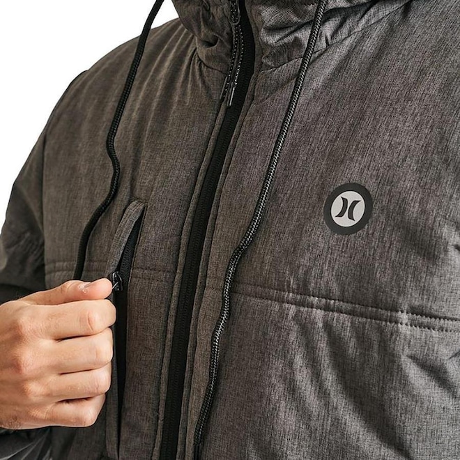 - Sobre o produto - Jaqueta com Capuz Hurley Stronger - Masculina- Jaqueta Hurley Stronger WT23 - Masculina - JAQUETA HURLEY ER - Jaqueta Hurley importada, tecido (heather), capuz com cordão e gola alta, heat transfer layers frontal, bolso frontal com zíper, manga e barra com elástico, bolsos laterais e etiquetas personalizadas. - <>Características Principais: - Composição: Poliéster.
