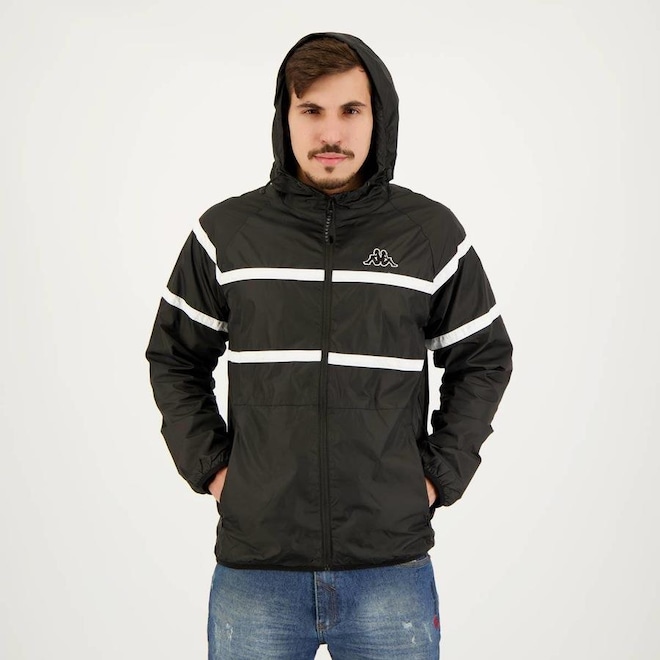 - Sobre o produto - Jaqueta Kappa Corta-Vento Logo Sport - Masculina- Jaqueta Kappa Corta-Vento Logo Sport - Masculina Composição: 100% Poliamida Composição forro e enchimento: 100% Poliéster Abertura/fechamento: Zíper Cor predominante: '''' Bolsos: Dois, com zíper Indicado para: Treino Gênero: Masculino Logo: Bordada Manga: Longa Capuz: Fixo Gola: Alta Dimensões aproximadas (A x L): P: 68 x 53 cm M: 70 x 55 cm G: 72 x 57 cm GG: 74 x 59 cm EG: 76 x 61 cm- ref: M0ZDUT