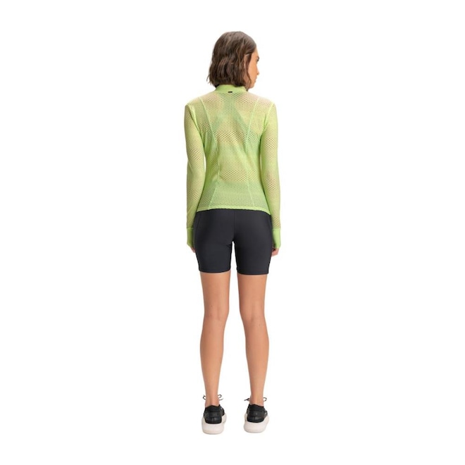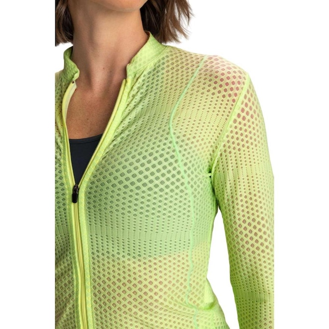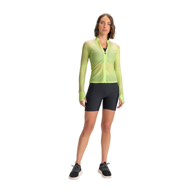 Jaqueta manga longa com abertura para dedo, modelagem slim fit e recortes anatômicos.
