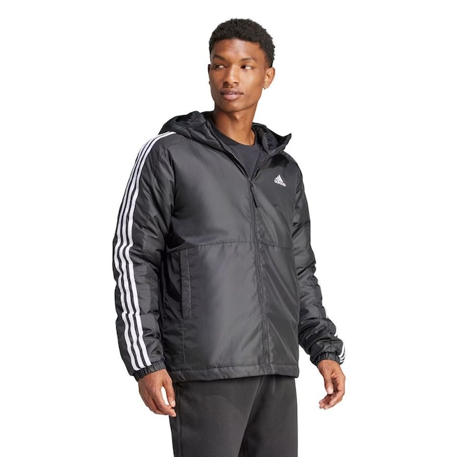 Nome: Jaqueta Adidas 3 Stripes Gênero: MasculinoIndicado para: Uso casual Características: Acabamento impermeável sem PFCComposição: Tecido plano 100% poliéster recicladoFechamento: ZíperCapuz: Sim Punho: Punhos elásticosBolso: Bolsos frontais com botões de pressãoMarca: Adidas Código do artigo: IN7194
