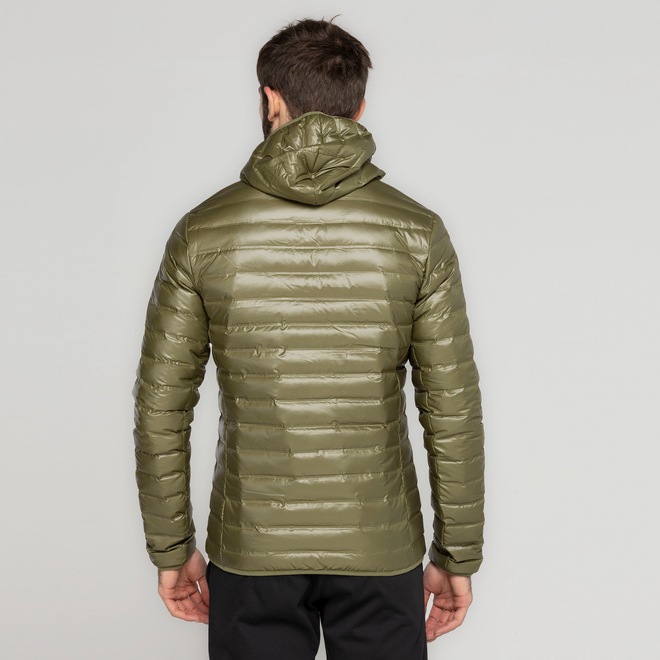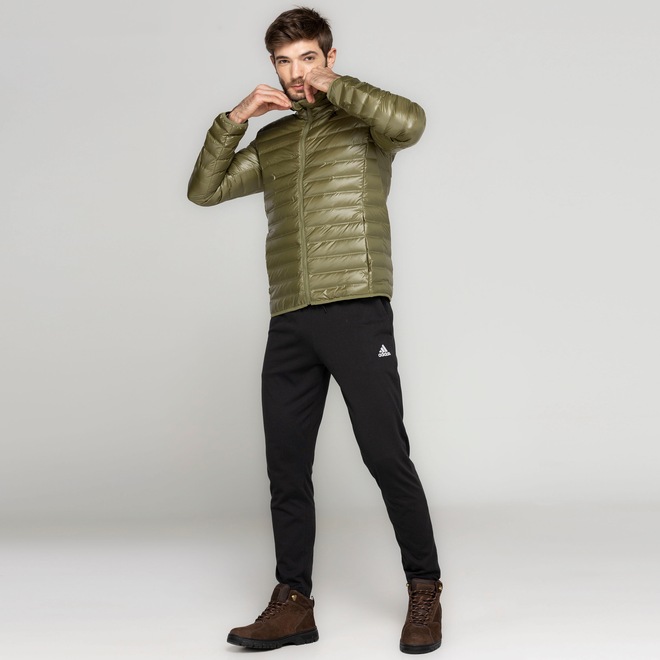Possui isolamento térmico natural com enchimento por pluma de pato esterilizado para te aquecer na medida certa e acabamento hidrofóbico sem PFC (perfluorocaboneto).