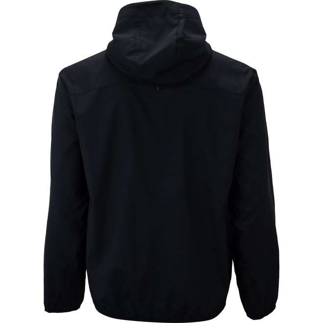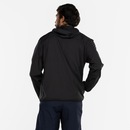 Conta com capuz com ajuste por elástico, sua gola é alta e tem detalhes refletivos.
