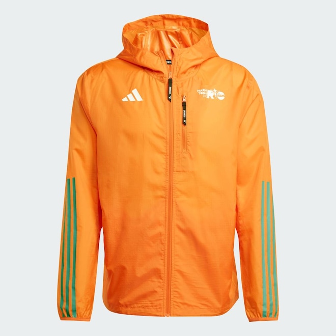 - Sobre o produto - Sonhe com os dias quentes e ensolarados do Rio enquanto enfrenta o vento com esta jaqueta de corrida adidas. A tecnologia WIND.RDY bloqueia o vento para ajudar você a manter o ritmo durante corridas de treino em dias com rajadas, e a barra ajustável com cordão elástico ajuda a impedir a entrada de ar frio. Você conta com vários bolsos para manter o celular, as chaves e os géis de energia sempre à mão. - ref: M16Y89
