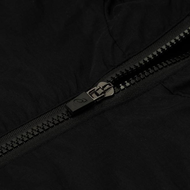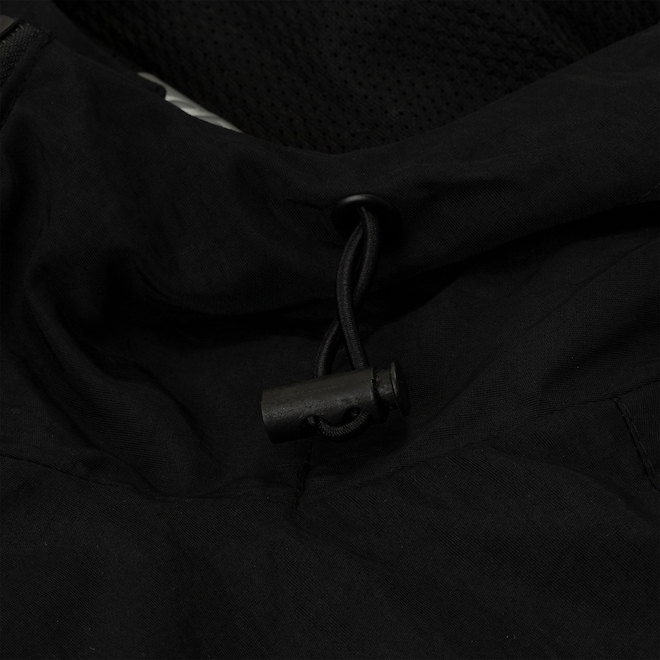 A gola alta com fechamento em zíper oferece mais proteção para o pescoço, enquanto a barra com ajuste por elástico proporciona um ajuste seguro e confortável.