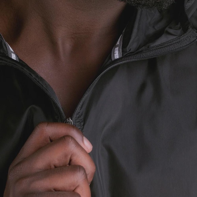 Para quem precisa de proteção leve sem perder o estilo A Jaqueta Corta-vento Corre é confeccionada em tecido leve de poliamida oferecendo uma sensação de conforto térmico pois é feita com tecnologia wind protection que bloqueia o vento. Os furos à laser em regiões estratégicas garantem maior conforto térmico. Os logos são refletivos para trazer visibilidade à noite. As mangas e o capuz contam com elásticos e a barra é ajustável. O zíper possui trava e zipper garage que garante conforto pois não gera atrito com o corpo durante a prática esportiva. Possui um bolso localizado no ombro direito que além de transportar pequenos objetos também permite o transporte da jaqueta no seu modo packble.