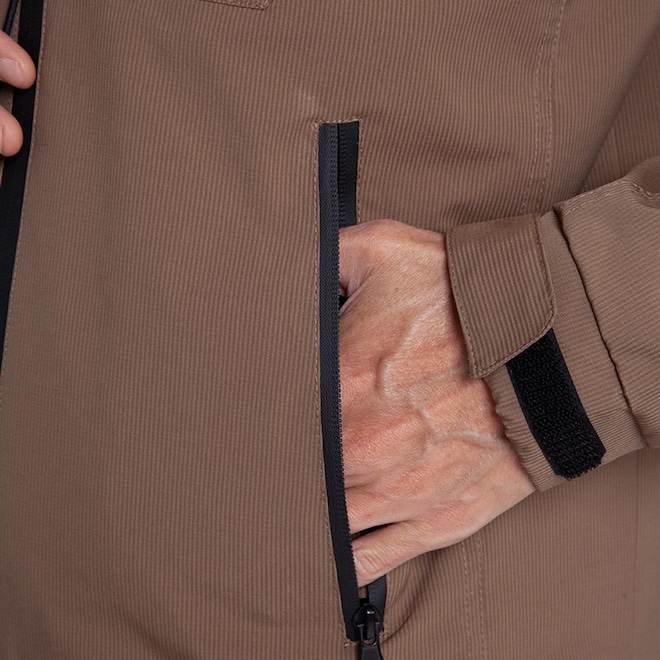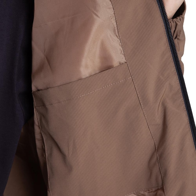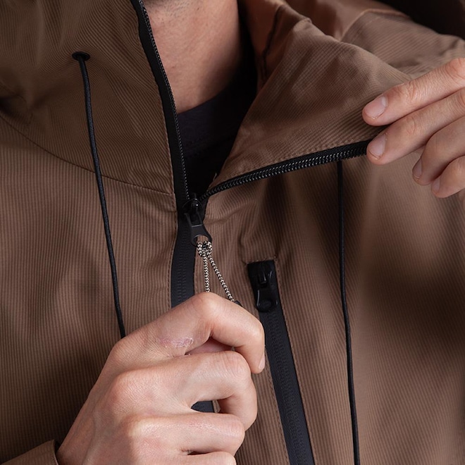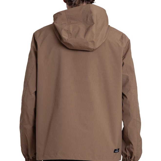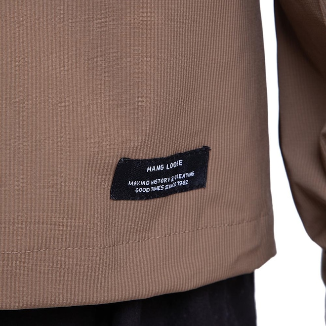 Jaqueta Hang Loose feita em tecido nylon impermeável, forro em nylon, fechamento frontal em zíper invertido, bolso frontais com fechamento em zíper invertido, capuz com ajuste em elástico e regulador, boca da manga com ajuste em velcro e etiquetas Hang Loose.
