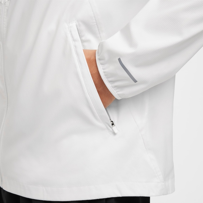 Bolso com ZíperFechamento Zíper Detalhes Refletivos Refletivo: Possui propriedades refletivas que aumentam a visibilidade para maior segurança aos atletas que praticam esportes em locais com pouca iluminação. Tecnologia(s) no Produto Nike Repel: Tecnologia projetada para repelir a água, mantendo o corpo seco em condições úmidas.