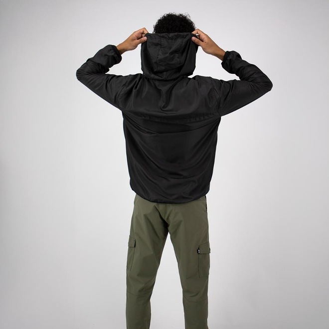 Confeccionado em poliéster de alta qualidade, o Windbreaker II garante proteção sem pesar. O capuz ajustável com cordão oferece cobertura sob medida, enquanto o zíper invertido proporciona visual limpo e reforça a durabilidade do conjunto. Os bolsos laterais embutidos, forrados em mesh, garantem praticidade no uso diário com ventilação estratégica.