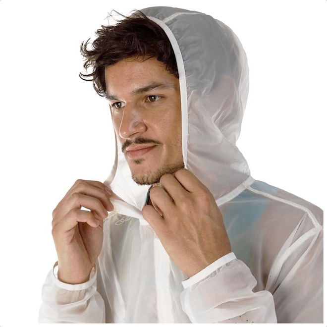 As mangas e o capuz contam com elásticos e a barra é ajustável.