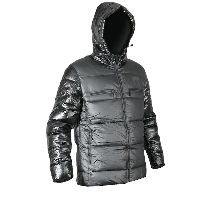 Este modelo de jaqueta possui forro, capuz, bolsos e fecho em zíper.