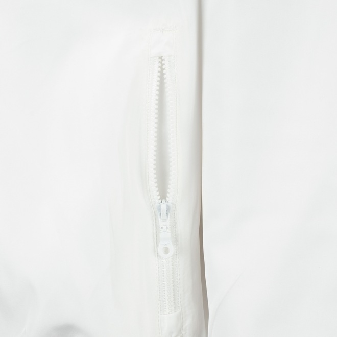 Possui fecho em zíper, três bolsos para guardar o essencial perto das mãos e seus punhos e barra são elásticos.