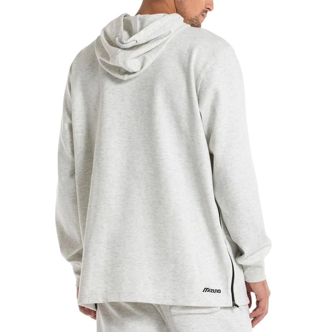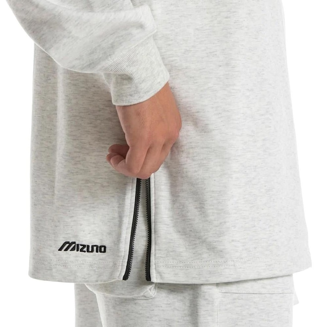 Na parte frontal, a jaqueta apresenta o logo Mizuno em alto relevo, conferindo um toque de estilo e autenticidade ao design.