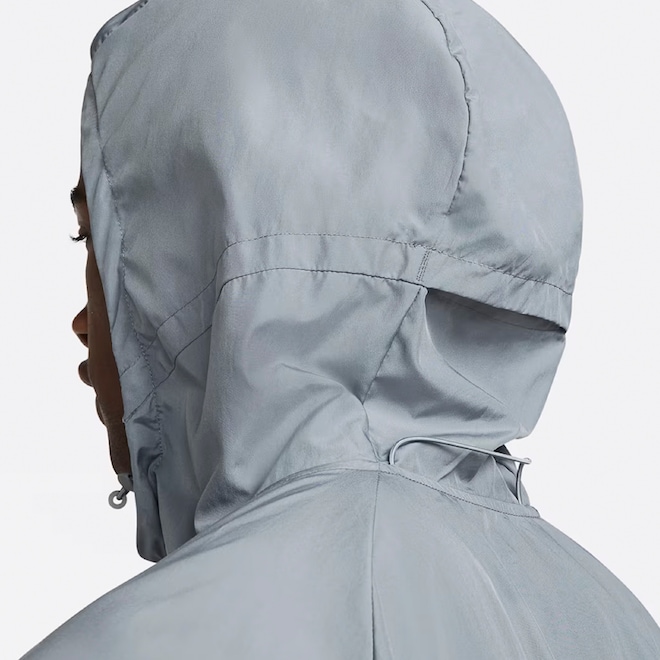 A jaqueta Nike masculina possui capuz ajustado por elástico e gola alta com tira interna em tecido que ajuda a diminuir o atrito de contato com a costura.