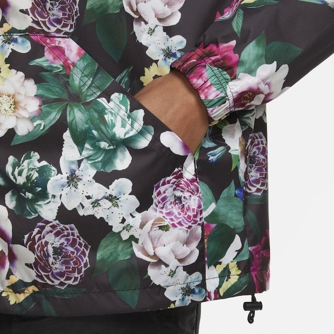 Feche o zíper e saia com a Jaqueta Nike Sportswear.Sua estampa floral dá um toque de cor vintage que homenageia estampas semelhantes dos anos 90.