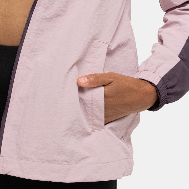 Seu design moderno conta com gola alta ajustável por zíper e punhos elásticos, garantindo um caimento impecável e versatilidade. Os dois bolsos laterais práticos são perfeitos para seus itens essenciais, unindo funcionalidade e praticidade.