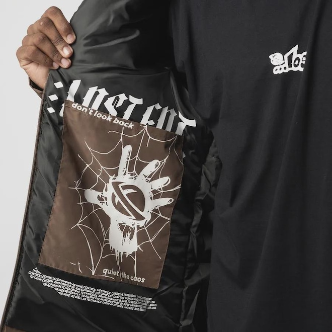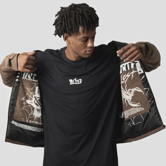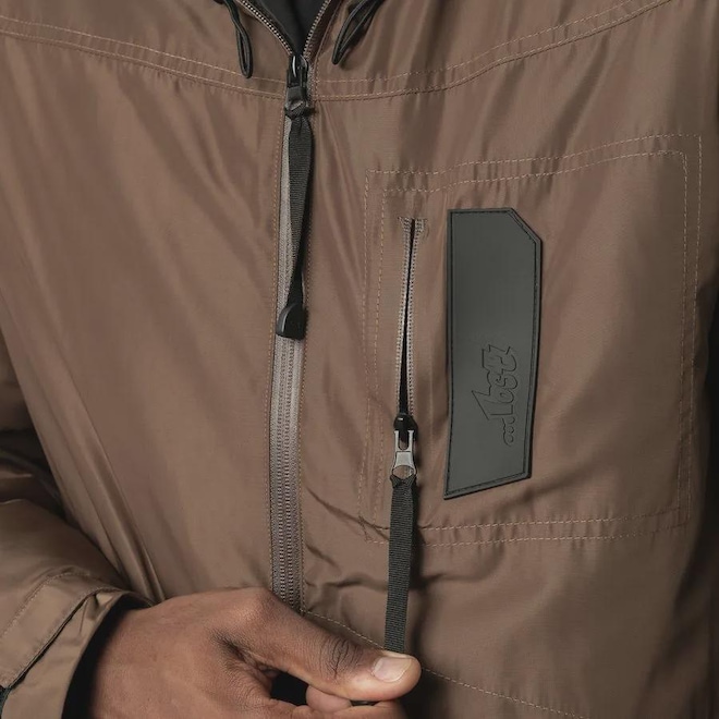 · Bolso embutido no peito com zíper em detalhe lost saturno.