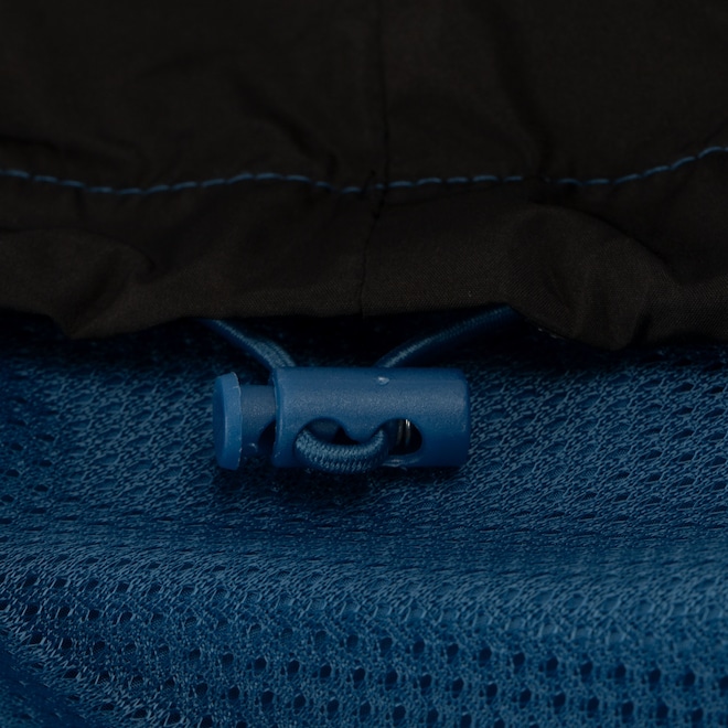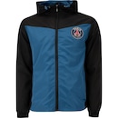 Em poliéster, possui forro, gola alta e capuz integrado ajustado por cordão.
