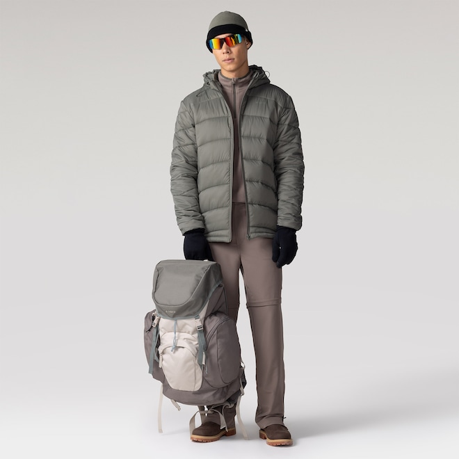 Leveza Surpreendente: Apesar do volume e da capacidade térmica, a tecnologia de fibras ocas permite que a jaqueta seja leve e fácil de carregar em viagens.
