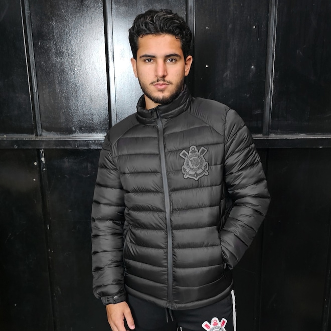 Jaqueta Puffer do Corinthians All Black Masculina - Foto 1