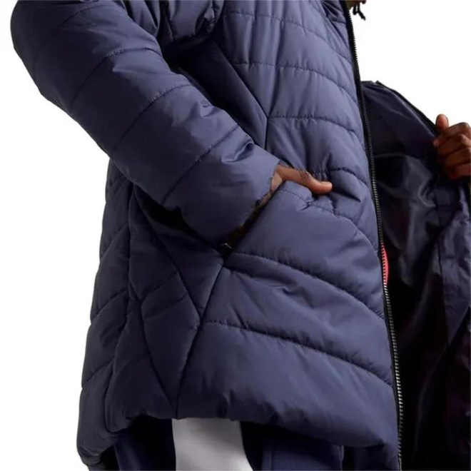 A jaqueta tem painéis laterais e costura lateral invertida para um ajuste aprimorado, além de punhos e bainha com elástico interno para um ajuste mais ajustado. Feita com pelo menos 20% de material reciclado, como parte do compromisso com um futuro mais sustentável.
