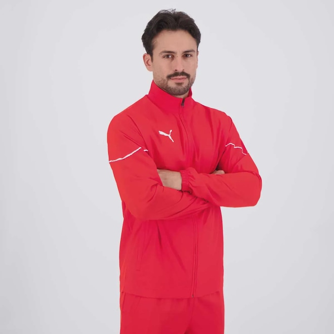 Composição: 100% Poliéster Abertura/fechamento: Zíper Cor predominante: Vermelho Logo: Estampado Origem: Importado Gênero: Masculino Bolsos: Dois frontais, sem zíper Manga: Longa Gola: Alta Capuz: Não Forro: Não Dimensões aproximadas (A x L): P (S): 76 x 54 cm M (M): 78 x 56 cm G (L): 80 x 58 cm GG (XL): 82 x 60 cm