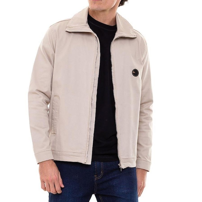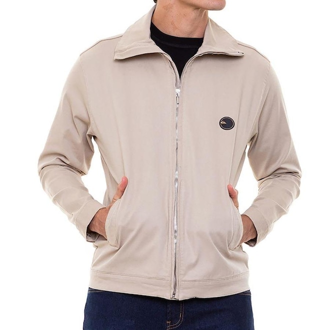 Jaqueta Quiksilver com tecido de sarja com elastano, bolsos nas laterais, etiqueta no peito e centralizado no recorte ads costas, fechamento da vista em zíper de metal e modelagem regular.