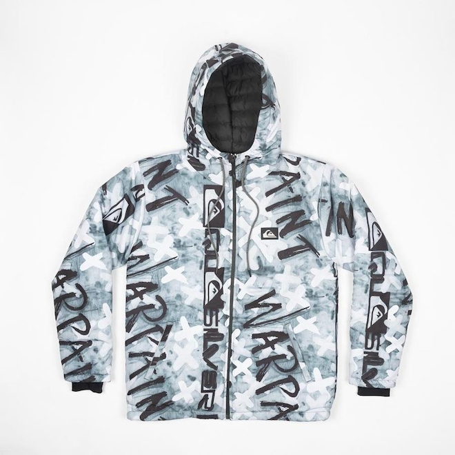 Jaqueta QuikSilver Puffer feita em tecido poliéster sublimado leve com forro, gola alta, bolsos laterais, bolso interno, lapela frontal com fecho em velcro, barra reta, punhos de retilínea e modelagem regular.