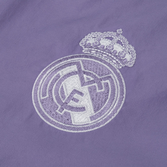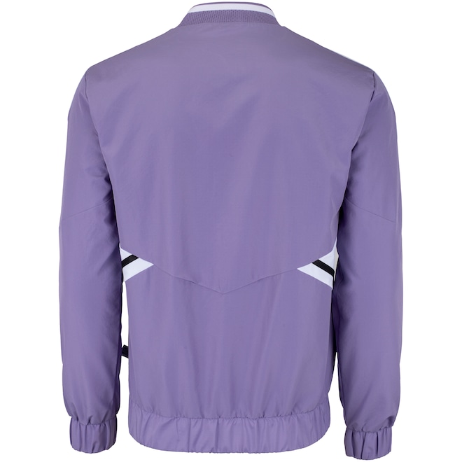 A jaqueta Real Madrid possui gola em “v” e canelada, além de barra e punhos elásticos.