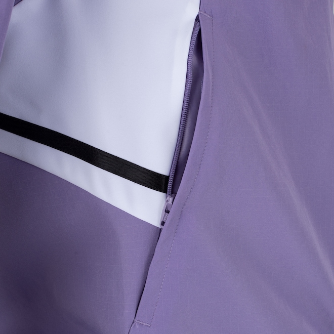 De fechamento em zíper, com bolsos frontais em zíper para guardar o essencial durante as atividades.