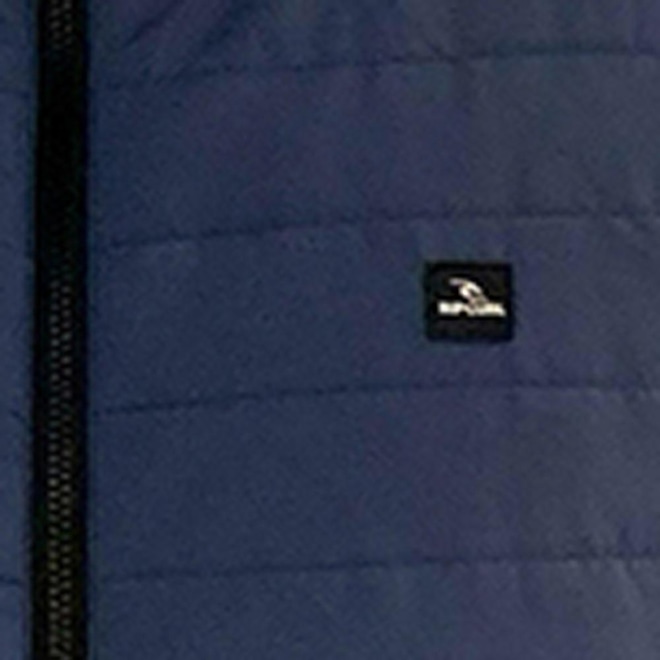 Jaqueta Rip Curl poli tafetá 65g dwr, matelassê, patch logo silicone, capuz ajustável, bolsos frontais embutidos e etiquetas personalizadas.
