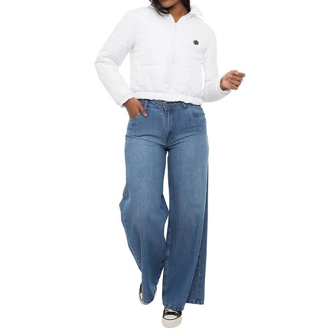 Casaco puffer Roxy com gola alta, zíper central, bolsos laterais, patch emborrachado Roxy na frente e etiquetas personalizados.