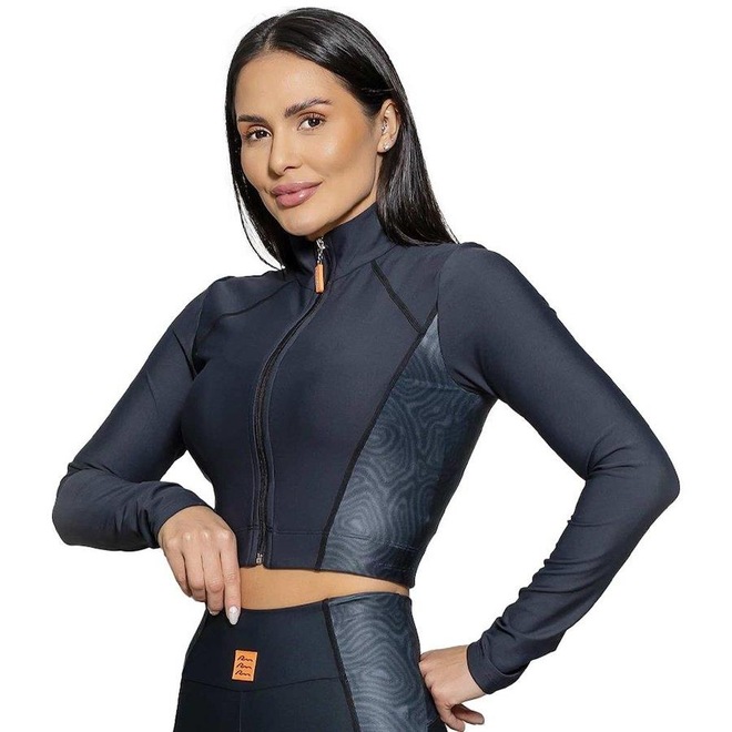 A Jaqueta Run More Unique Feminina apresenta modelagem cropped gola alta. Fechamento com zíper e puxador emborrachado personalizado Run More. Barra com elástico na parte interna e recortes frente e costas que acinturam a peça. O coordenado Unique é uma opção inusitada devido ao visual monocromático que compõe o tecido liso com a estampa abstrata de linhas orgânicas. O toque único e moderno é incrementado com a aplicação de etiquetas emborrachadas que podem estar em cores neon nas peças. Perfeita pra você! 84% poliamida, 16% elastano;Cropped gola alta;Barra elástica interna.ref: M14CUS