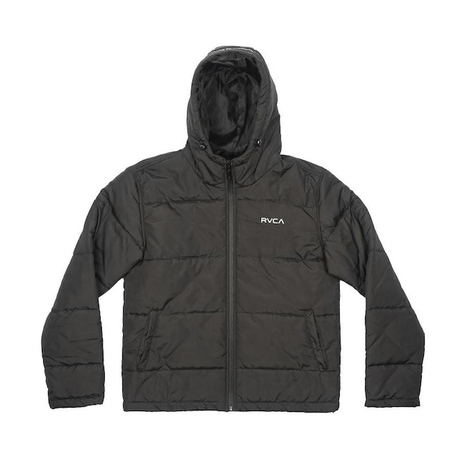 Jaqueta RVCA Puffer em tecido repelente a água com enchimento coleção Plus Size, bolsos embutidos frente, fechamento da vista com zíper, barra e capuz com reguladores, estampa localizada no peito e capuz e etiquetas personalizadas.