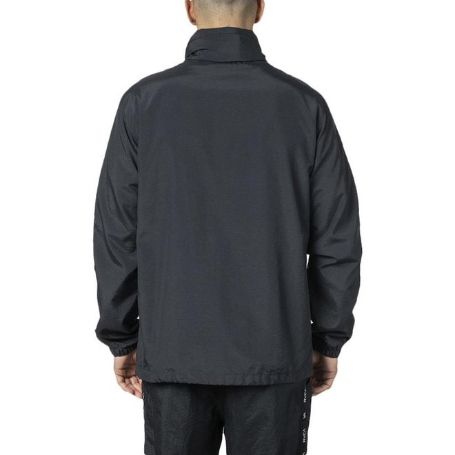 Jaqueta RVCA coleção RVCA SPORT em tecido de nylon poliamida, forro de tafetá, gola alta com capuz embutido e zíper, recortes na frente e manga, frente com bolso embutido, vivo personalizado aplicado na frente e mangas, silk logo no peito, ajustador na barra e etiqueta personalizada.