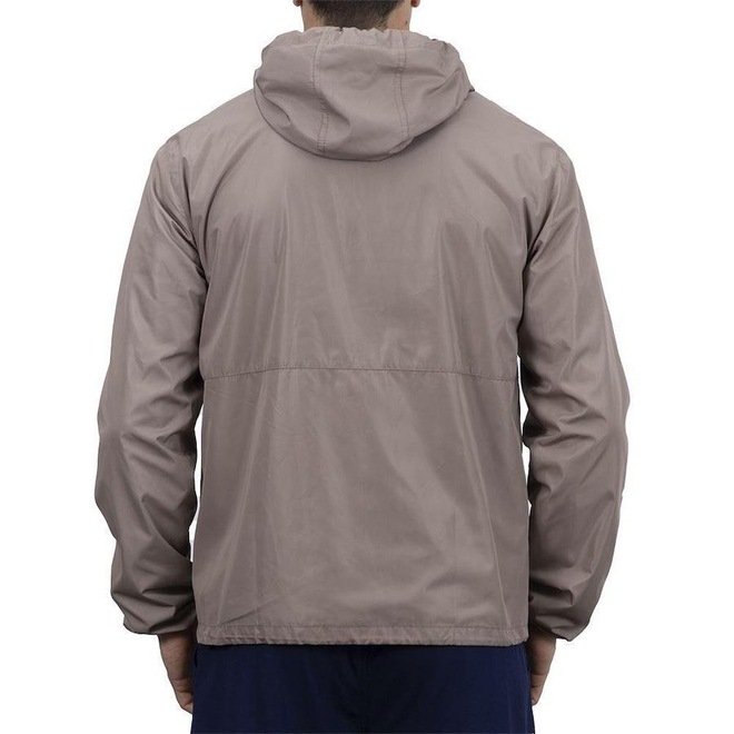 Jaquet RVCA em tecido de nylon pertentence a coleção RVCA SPORT, forro furadinho, regulador de capuz, bolsos na parte frontal com zíper, puxador personalizado, estampa silk logo no peito e manga e etiquetas personalizadas.