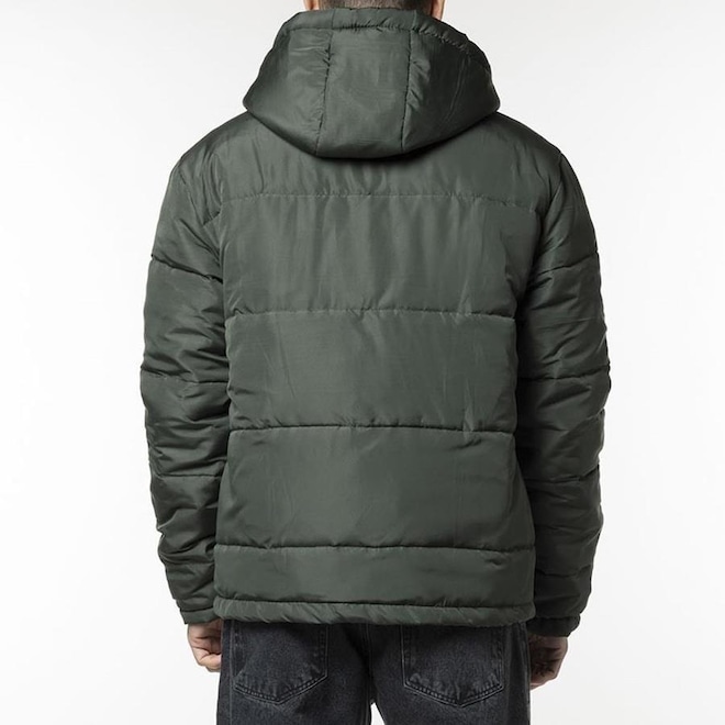 Jaqueta RVCA Puffer em tecido repelente a água com enchimento, gola alta com capuz aplicado, fechamento em zíper com vista sobreposta e velcro, bolsos embutidos
